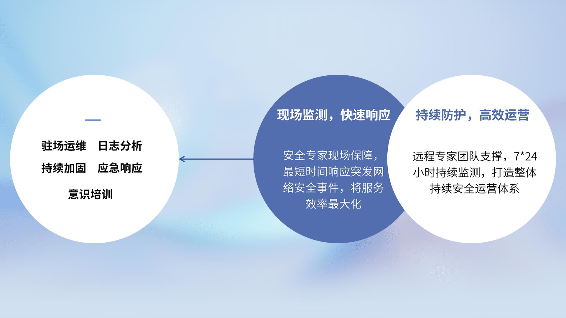 7X24小时持续监测安全事件,保持安全策略有效性,降低资产脆弱性风险,,精准拦截黑客攻击,,减少被黑客利用的机会,,,第一时间遏制,,降低损失。。